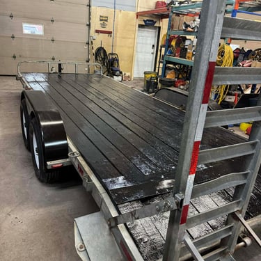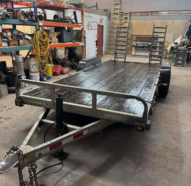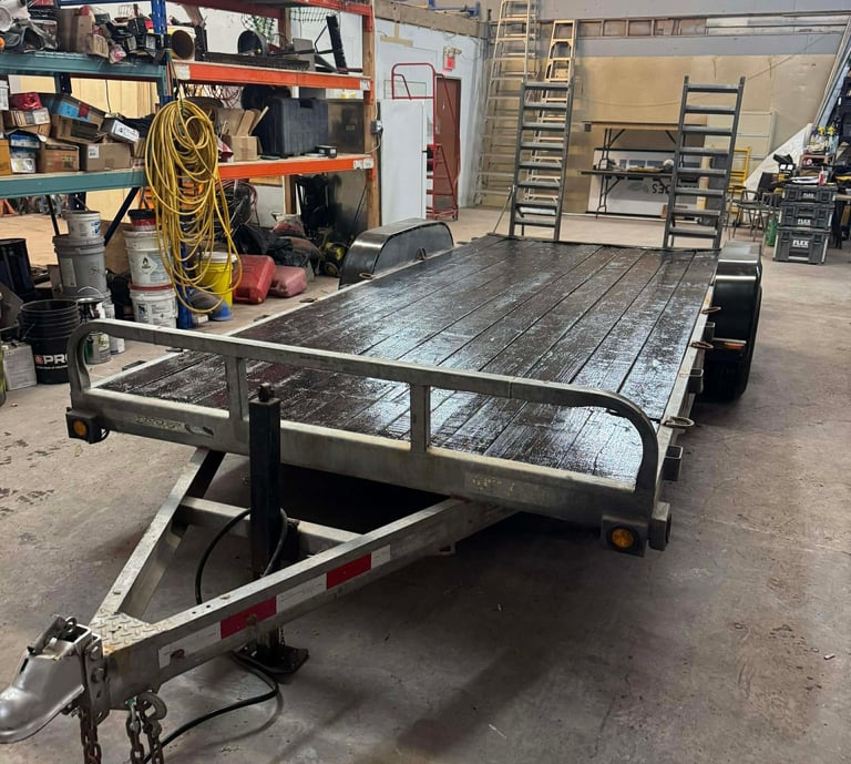 C’est la remorque des gros projets. Avec trois essieux et une plateforme de 25 pieds, elle est idéale pour des opérations industrielles ou des livraisons majeures.